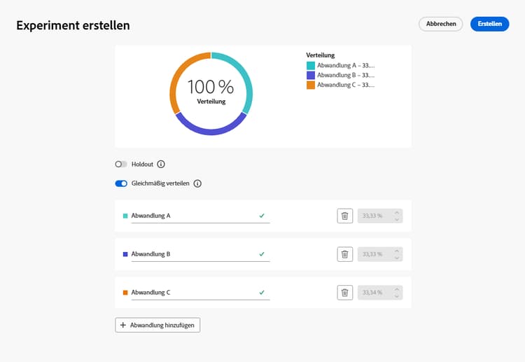 Sie können dann jeder Abwandlung einen bestimmten Prozentsatz zuweisen oder einfach den Umschalter Gleichmäßig verteilen aktivieren.
