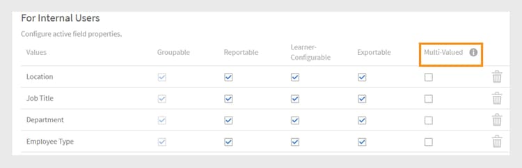 Sie können mehrere Werte über die CSV-Datei oder über die Benutzeroberfläche hinzufügen. Sobald das Feld mit mehreren Werten in einer Benutzergruppe verwendet wurde, kann es nicht mehr in ein Feld mit einem einzelnen Wert geändert werden.