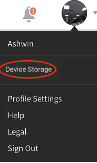 Tippen Sie auf das Profilsymbol in der rechten oberen Ecke der App und tippen Sie auf die Menüoption Gerätespeicher.