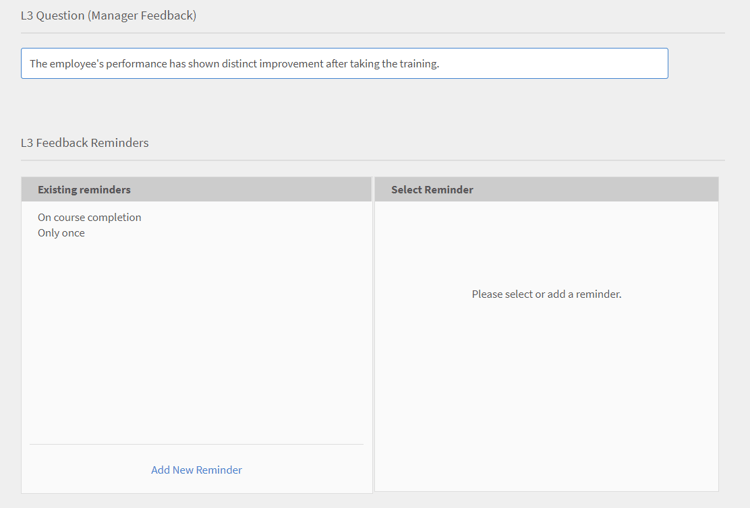 Ähnlich wie beim L1-Feedback können Sie die Erinnerungen für das L3-Feedback konfigurieren. Sie können entweder die vorhandene Erinnerung ändern oder eine neue Feedbackerinnerung hinzufügen.