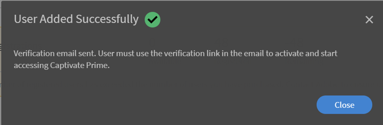 Das System zeigt eine Meldung an, dass der Benutzer erfolgreich hinzugefügt wurde. Der Benutzer erhält einen Bestätigungslink unter der angegebenen E-Mail-ID. Der Benutzer kann auf diesen Link klicken, um sein Konto zu aktivieren und mit dem Zugriff auf Learning Manager zu beginnen.