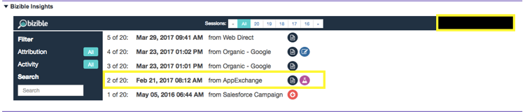 Erfahren Sie mehr über die Marketo Measure Insights-Ansicht in Salesforce, einschließlich der Darstellung der verschiedenen Symbole und der Verwendung der Funktion. Diese Funktion ist am hilfreichsten, um die ersten 20 Sitzungen eines Leads, Kontakts oder Kontos anzuzeigen.