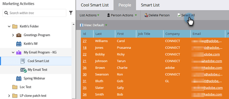 Klicken Sie Alle auswählen. Sie können auch Strg/Befehl verwenden und auf einige Datensätze klicken, um sie manuell auszuwählen.