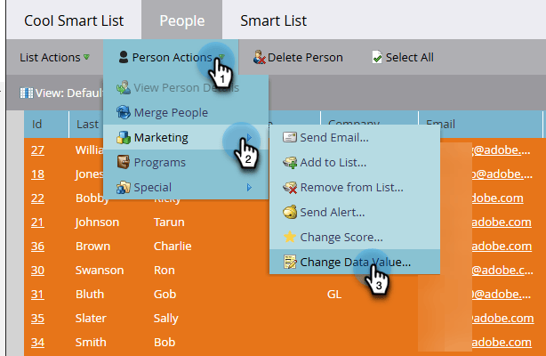 Suchen Sie ein „Attribut und wählen Sie es. In diesem Beispiel nehmen wir alle Personen, die den Bundesstaat „Kalifornien“ haben, und ändern ihn in „CA“.