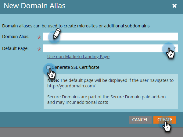 DNS-Zuordnung für Domain zu Marketo Engage: Bevor Sie Domains in der Benutzeroberfläche hinzufügen, müssen Sie CNAMEs einer von Marketo bereitgestellten Domain zuordnen.