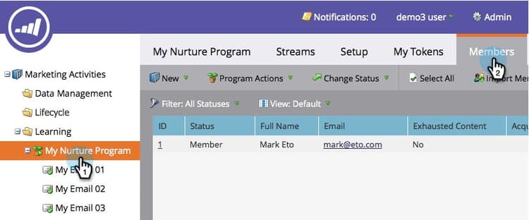 Wählen Sie Ihr Interaktionsprogramm aus und wechseln Sie zur Registerkarte Mitglieder .