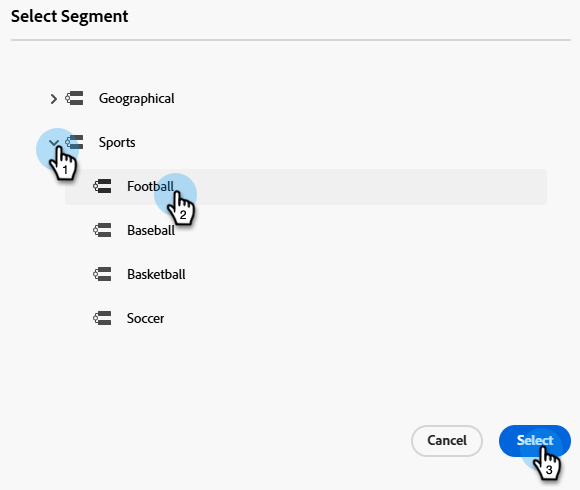 Wählen Sie das gewünschte Segment aus und klicken Sie auf Auswählen.