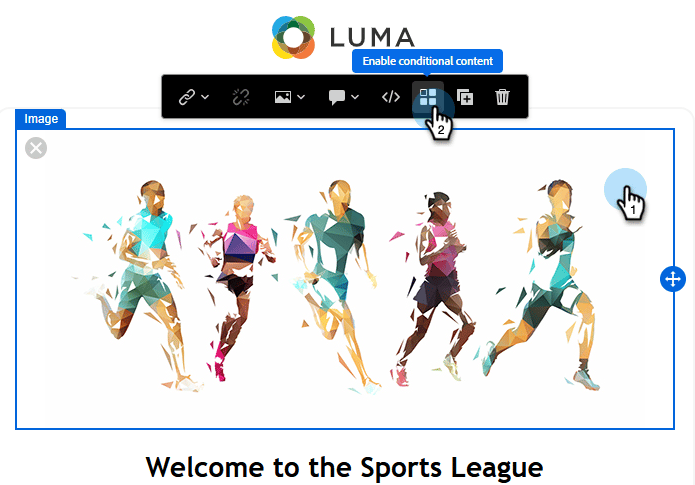 Wählen Sie den Inhalt aus, der bedingt sein soll (in diesem Beispiel wählen wir das Kopfzeilenbild aus). Klicken Sie auf Symbol „Bedingten Inhalt".