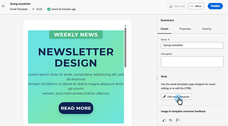 - Manuell verfeinern: Nehmen Sie die erforderlichen Anpassungen unter Verwendung der vollständigen Bearbeitungsfunktionen des E-Mail-Designer vor.