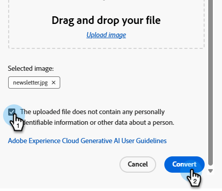note note NOTE Der Generierungsprozess kann je nach Komplexität und Größe des Bilddesigns bis zu fünf Minuten dauern. Die KI-Verarbeitung erfolgt im Hintergrund, sodass Sie diesen Bildschirm verlassen und an anderen Aufgaben arbeiten können, während die Konvertierung läuft. Möglicherweise müssen Sie den Bibliotheksbildschirm E-Mail aktualisieren, um die Statusänderung anzuzeigen. -