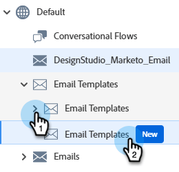 Klicken Sie Design Studio auf E-Mail-Vorlagen und dann auf E-Mail-Vorlagen (Neu).