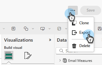 Klicken Sie im Bericht selbst auf das Symbol „Mehr“ (…) oben rechts und wählen Sie Exportieren.