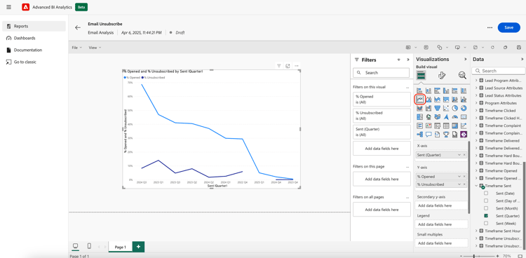 Ein kurzes Tutorial zum Visualisierungserlebnis finden Sie in der Dokumentation Verwenden von Visualisierungen in Power BI von Microsoft. Beachten Sie, dass möglicherweise nicht alle diese Funktionen in Marketo Engage angezeigt werden.