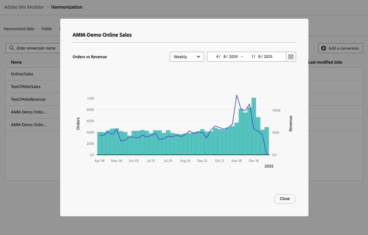 Wählen Sie ein harmonisiertes Feld aus Conversion metric for analysis aus, z. B. Orders.