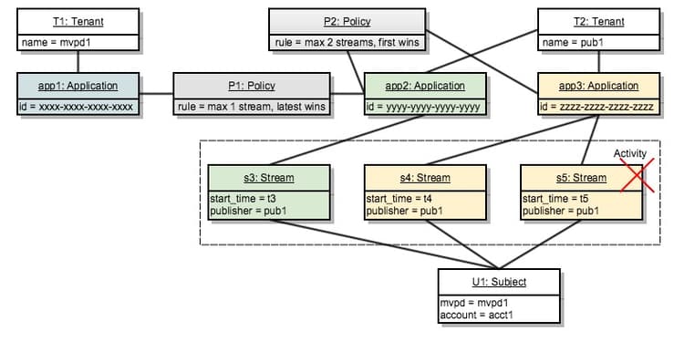 Wenn ein Stream für ein bestimmtes Subjekt autorisiert werden soll, prüft das System zunächst alle Richtlinien, die für die Anwendung definiert wurden, die den Stream erstellt hat.