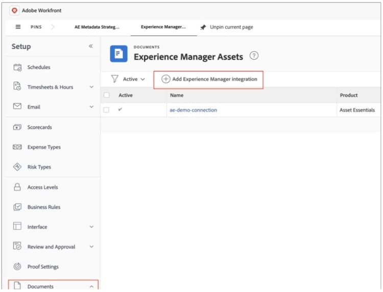 Demo step 3: Workfront AEM connection