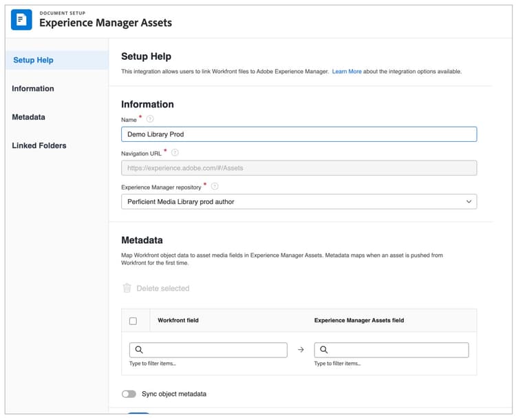 Demo Step 4: Workfront AEM connection metadata mapping