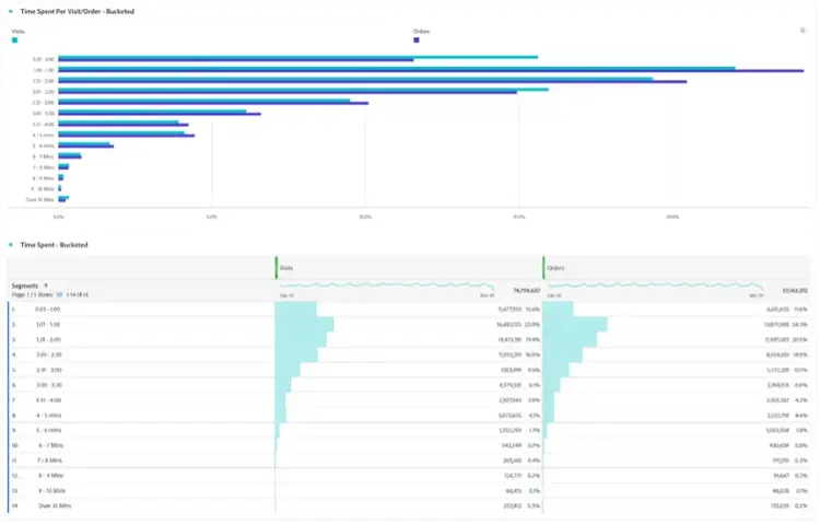 Beispielsweise stehen vordefinierte Buckets für die Besuchszeit pro Seite oder die Zeit pro Besuch zur Verfügung: