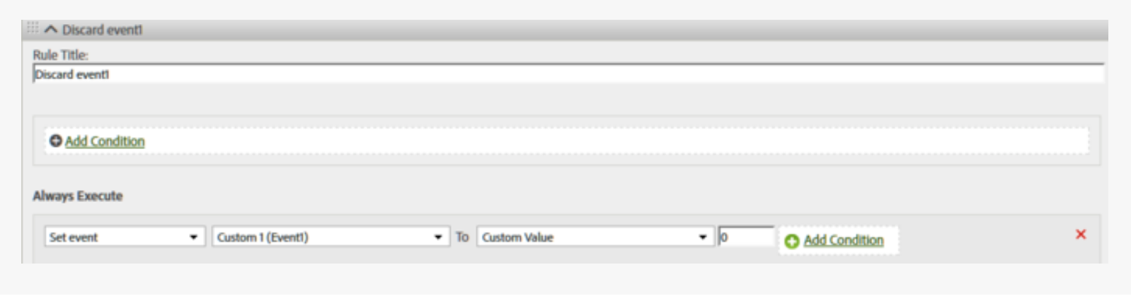 아래 이미지에 표시된 것처럼 이벤트를 사용자 지정 값 0으로 설정하도록 처리 규칙을 구성하십시오.
