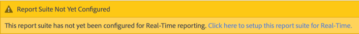 Si vous essayez d’afficher des rapports en temps réel pour une suite de rapports qui n’a pas été configurée pour la création de rapports en temps réel, un message s’affiche. Celui-ci vous permet de configurer la suite de rapports.