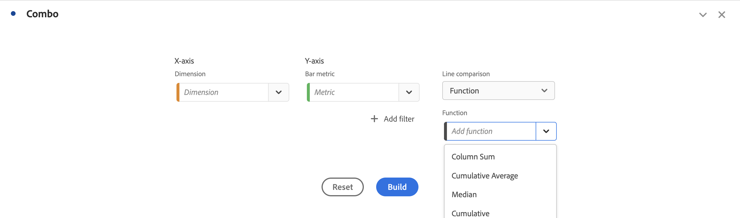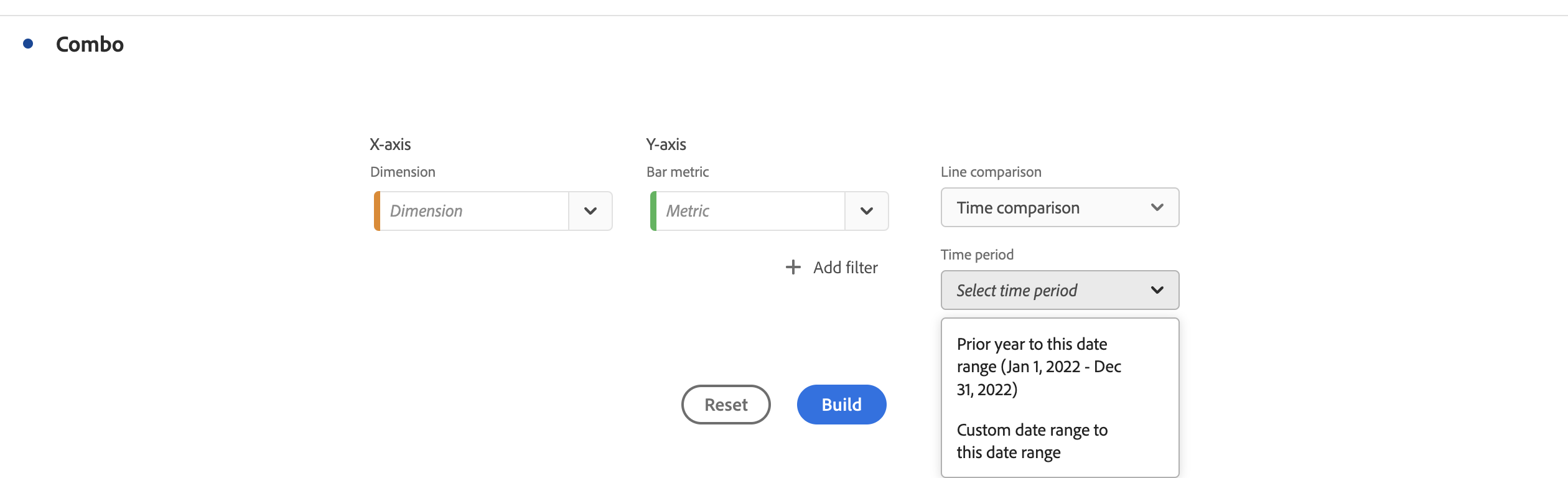 드롭다운 목록에서 X축에 대한 차원 및 Y축에 대한 지표를 선택합니다.