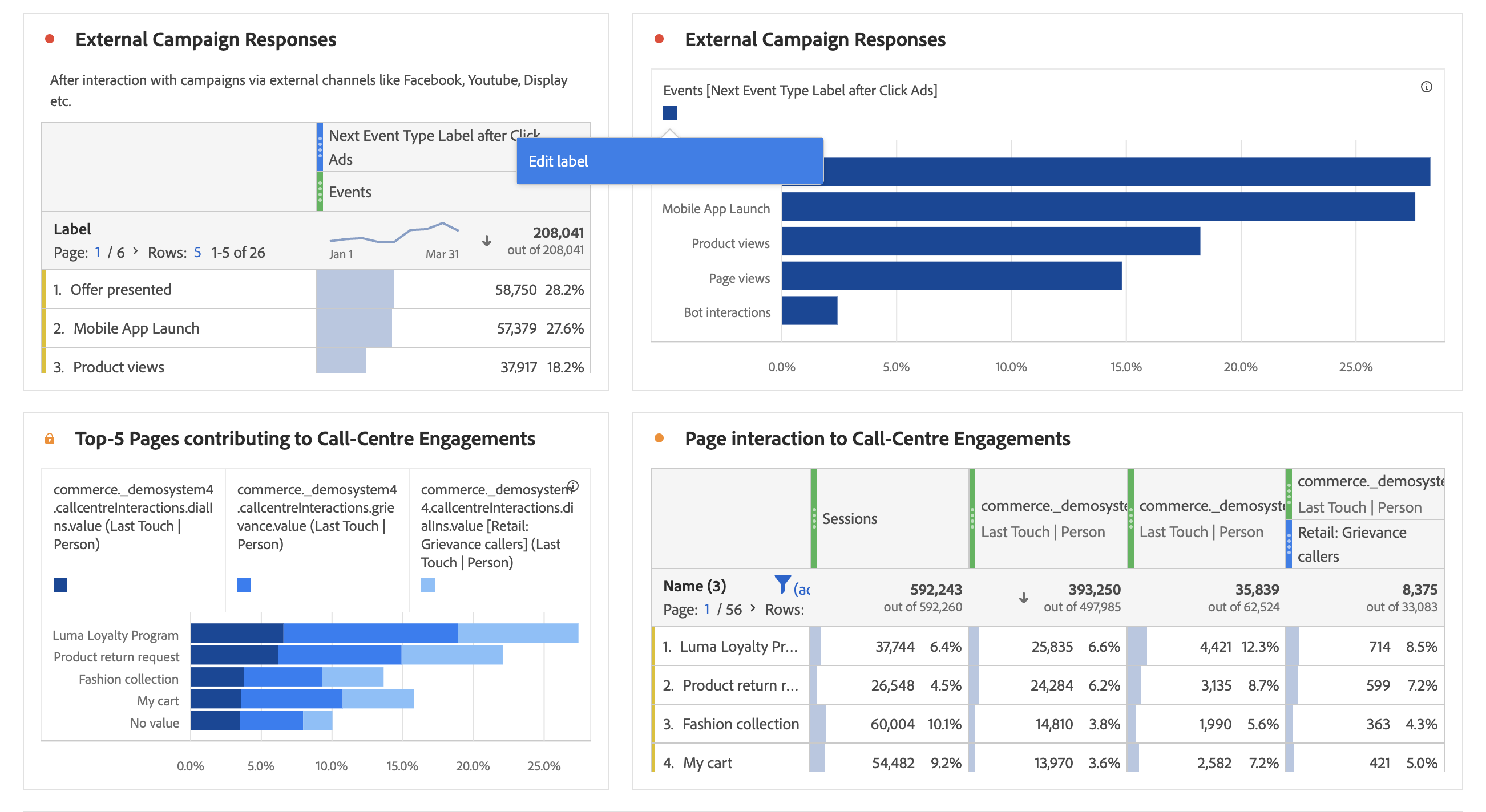 De plus, vous pouvez renommer les étiquettes de légende pour rendre les visuels plus exploitables. Remarque : il nʼest pas possible de modifier les légendes des visualisations Treemap, Puce, Résumé des changements, Synthèse des chiffres, Texte, Structure libre, Histogramme, Cohorte ou Flux.
