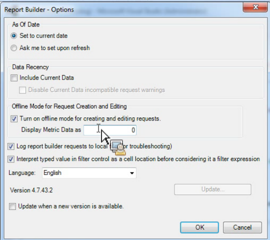 Report Builder 메뉴에서 옵션을 클릭합니다.
