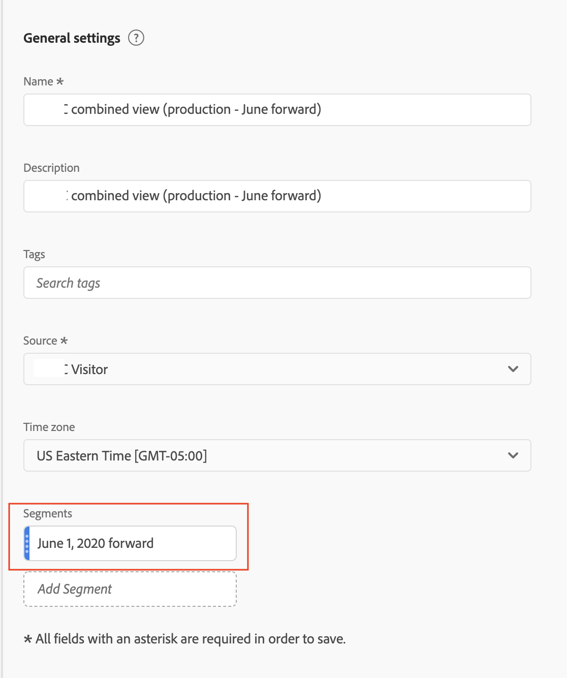 Wenn wir das Zusammenfügen von Daten einschalten, beginnt dieses Zusammenfügen an einem bestimmten Datum. Angenommen, dieses Datum ist der 1. Juni. Die Virtual Report Suite für geräteübergreifende Analyse enthält nicht zugeordnete Daten, die vor dem 1. Juni vorlagen. Möglicherweise möchten Sie Daten in der Virtual Report Suite vor dem 1. Juni ausblenden, damit sich Ihre Analyse auf Datumsbereiche nach dem Beginn des Zusammenfügens konzentrieren kann.