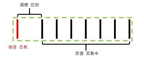 가상 보고서 세트에 대해 이 기능이 활성화되어 있지 않으면 배경 히트 수는 다른 히트 수와 동일하게 처리되며, 이는 배경 히트 수가 새로운 방문을 시작하고 전경 히트 수와 동일하게 동작함을 의미합니다. 예를 들어 전경 히트 세트가 발생하기 전 30분 (보고서 세트에 대한 표준 세션 시간 제한) 안에 배경 히트가 발생하는 경우 이 배경 히트는 세션의 일부로 수행됩니다.