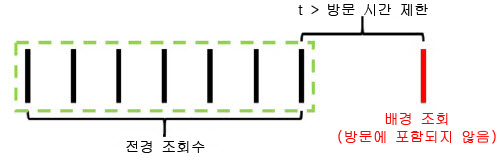 마찬가지로, 기간 t가 가상 보고서 세트의 구성된 시간 제한보다 작다면 배경 히트가 이전 전경 히트에 의해 형성된 방문에 포함됩니다.