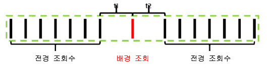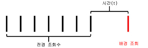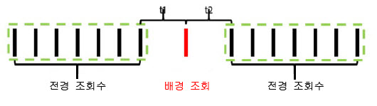 예 1: 일련의 전경 히트가 발생하기 일정 기간 (t) 전에 배경 히트가 발생합니다.