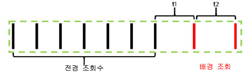소요된 시간은 여전히 히트와 히트 사이의 시간을 사용하여 배경 히트가 없을 때와 유사한 방법으로 계산됩니다. 하지만 방문에 배경 히트가 포함된 경우 (충분히 전경 히트 수만큼 발생했으므로)에는 해당 히트가 전경 히트처럼 방문당 체류 시간 계산에 포함됩니다.