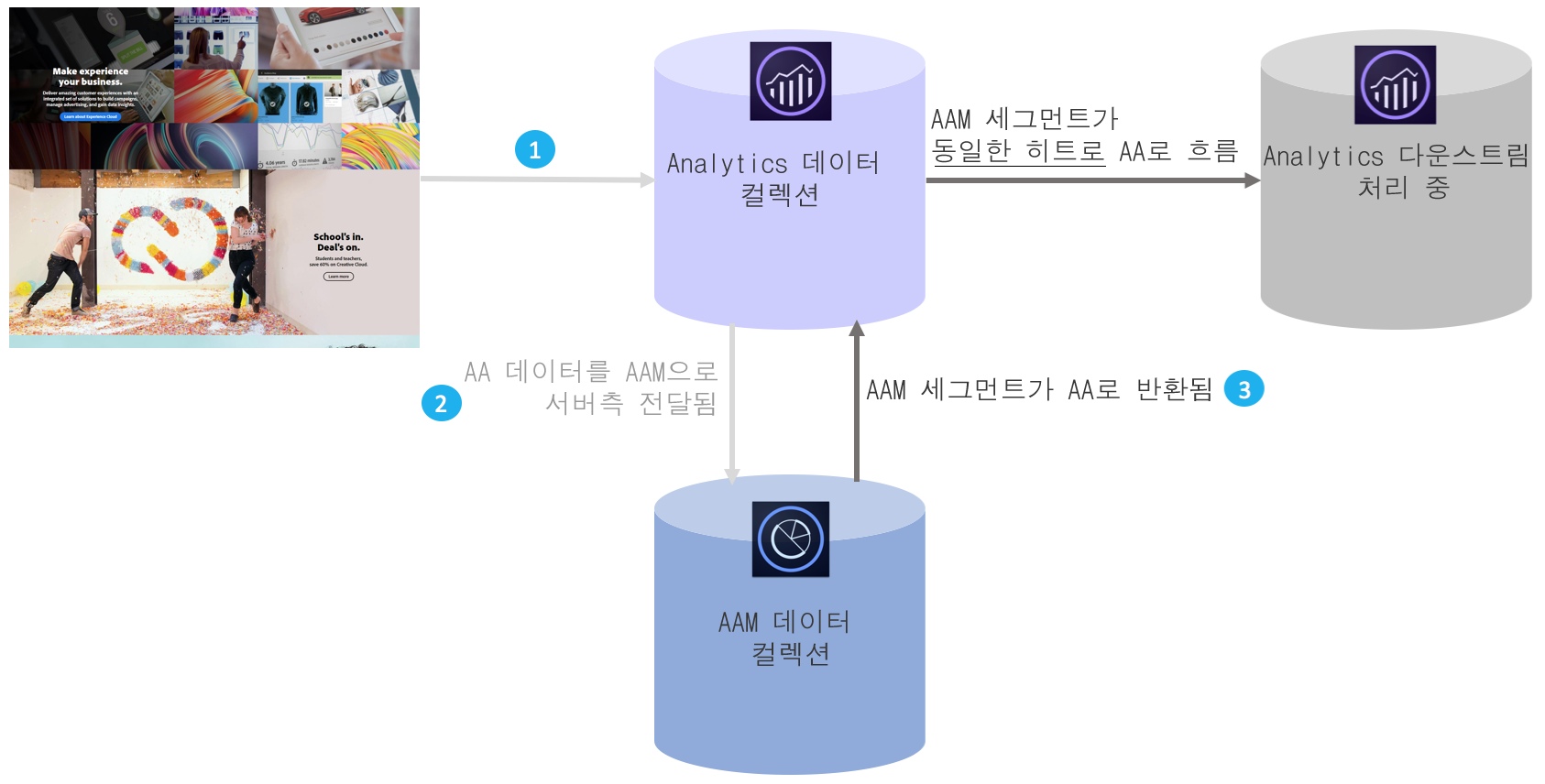서버측 전달과 함께 Analytics에서 수신한 각 히트 수는 자동으로 실시간으로 AAM으로 전송됩니다.