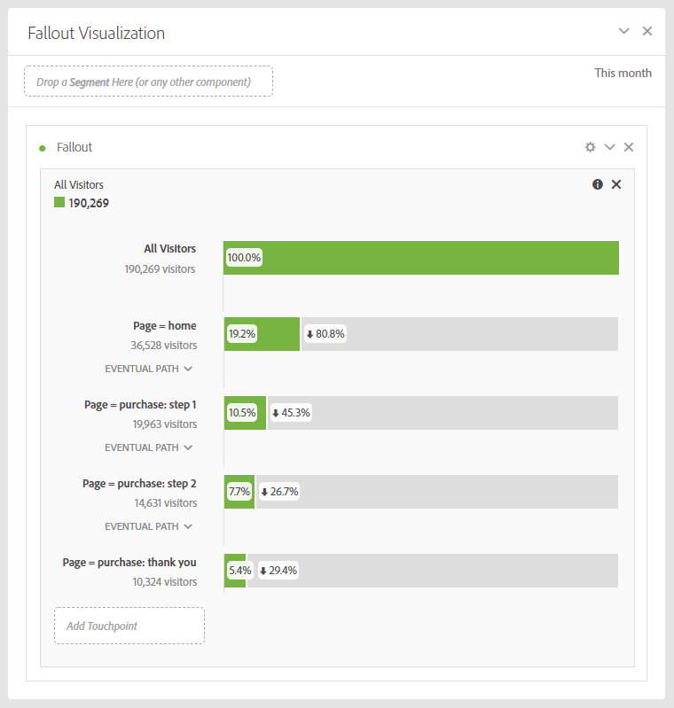Analysis Workspace에서 이 데이터는 폴아웃 시각화를 사용하여 볼 수 있습니다.