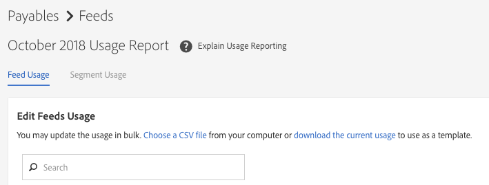 2. Seleccione el o Feed Usage pestaña Segment Usage, según el tipo de sistema de informes que desee actualizar.