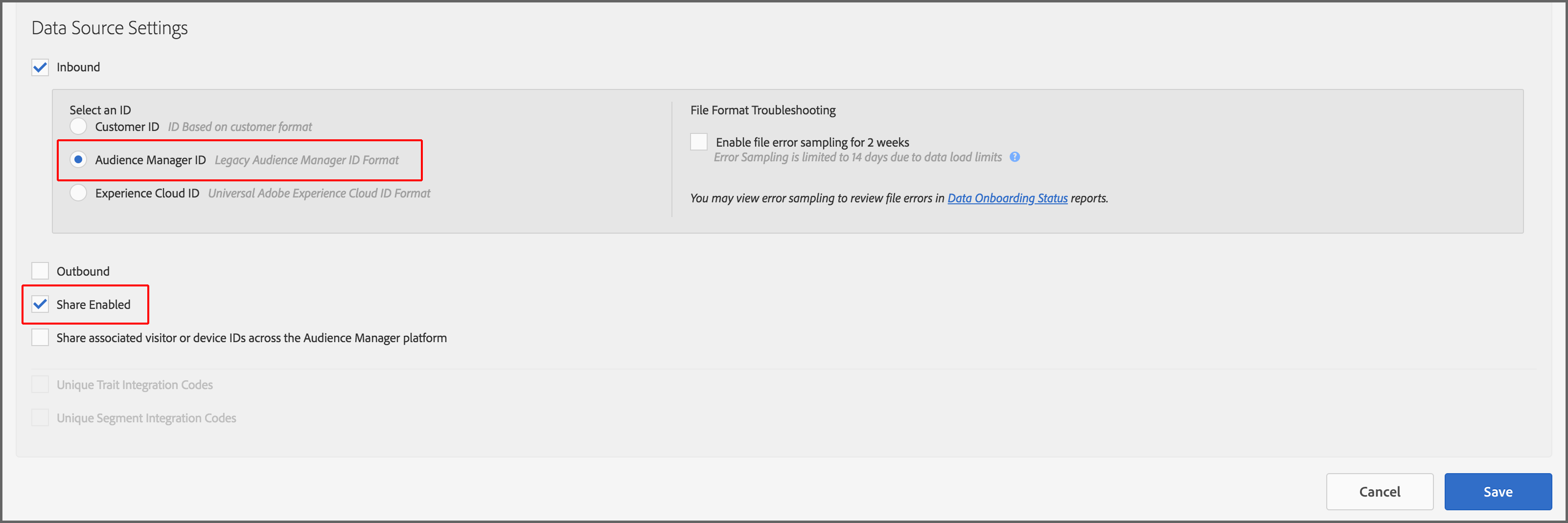 Audience Manager 계정에서 다음을 사용하여 새 쿠키 데이터 소스를 만듭니다.