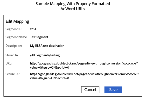 6. Audience Manager에서 이 destination에 새 세그먼트를 매핑할 때 매핑을 aam=segmentID(으)로 정의하고 segmentID을(를) 세그먼트 ID로 바꾸십시오.