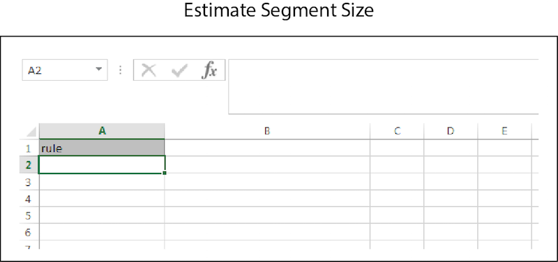 이 작업을 수행하면 예상 세그먼트 크기 데이터가 포함된 Response 열이 워크시트에 만들어집니다. 데이터를 입력하기 전에 벌크 예상 워크시트는 다음과 유사해야 합니다.