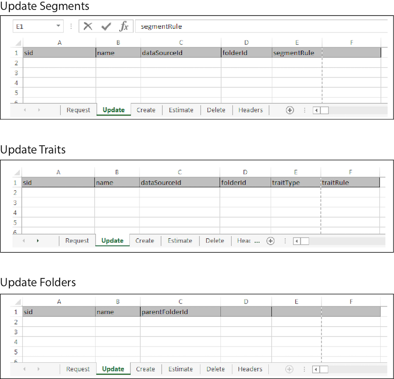 업데이트 헤더를 업데이트 워크시트의 첫 번째 행에 붙여넣습니다. 다음을 참조하십시오.