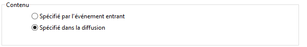Le contenu du message peut être défini dans la diffusion ou dans l'événement entrant.