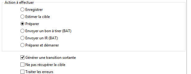 Sélectionnez le type d'action à effectuer parmi les options disponibles :