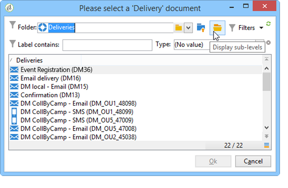 의 드롭다운 목록에서 캠페인을 선택합니다 Folder 필드 또는 Display sub-levels 하위 폴더에 포함된 모든 게재를 표시하려면 다음을 수행하십시오.