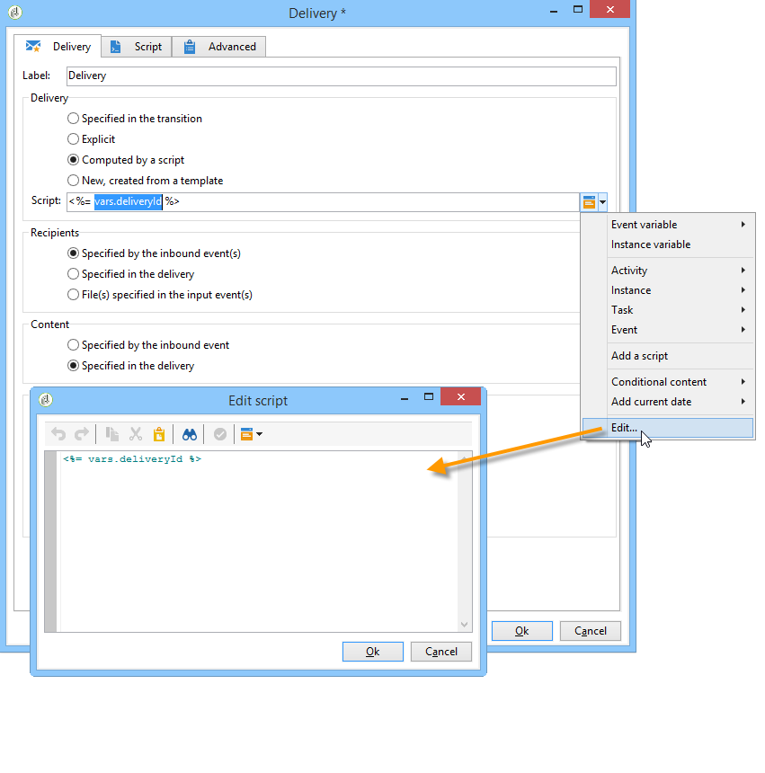 스크립트를 만들어 게재를 계산합니다. 이렇게 하려면 Computed by a script 옵션을 선택하고 스크립트를 입력합니다. 을 클릭하여 입력 창을 열 수 있습니다 Edit… 선택 사항입니다. 다음 예제에서는 게재 식별자를 복구합니다.