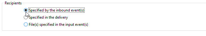 다음의 경우 생성된 파일의 전체 이름 File(s) specified by inbound event(s) 옵션이 Recipients 섹션을 참조하십시오.