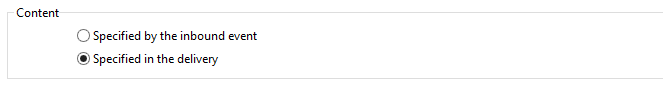 다음의 경우 컨텐츠 식별자 Specified by inbound events 옵션이 Content 섹션을 참조하십시오.