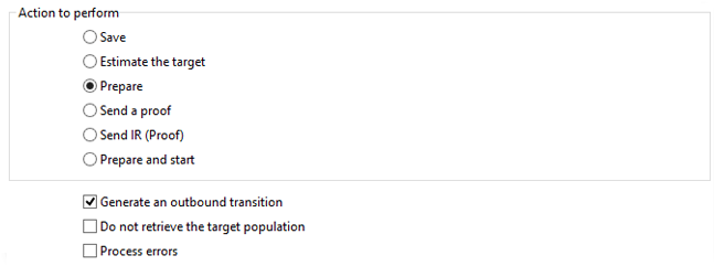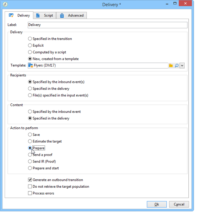 다음 Act on a delivery 워크플로우에서 추가로 사용되는 활동을 사용하면 게재를 시작하는 데 필요한 나머지 모든 단계(타겟 계산, 콘텐츠 준비, 게재)를 시작할 수 있습니다. 자세한 내용은 게재 제어.
