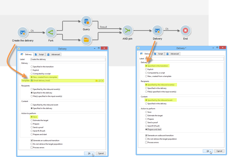 게재 식별자(예: Specified in the transition 옵션이 Delivery 섹션을 참조하십시오.