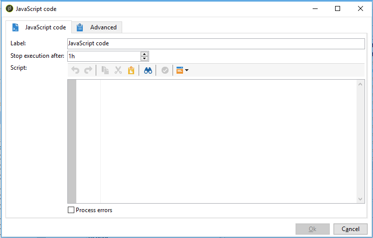 JavaScript code 및 Advanced JavaScript code 활동은 워크플로우의 컨텍스트에서 JavaScript 스크립트를 실행합니다. 스크립팅에 대한 자세한 정보는 다음 섹션을 참조하십시오.