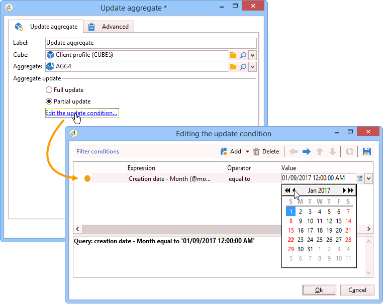 다음 Update aggregate 활동을 통해 적용할 업데이트 모드를 선택할 수 있습니다. 전체 또는 일부.