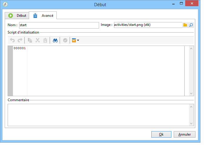 Ce champ vous permet d’initialiser des variables ou de modifier des propriétés d’activité. Voir à ce sujet la section : Scripts et templates JavaScript.